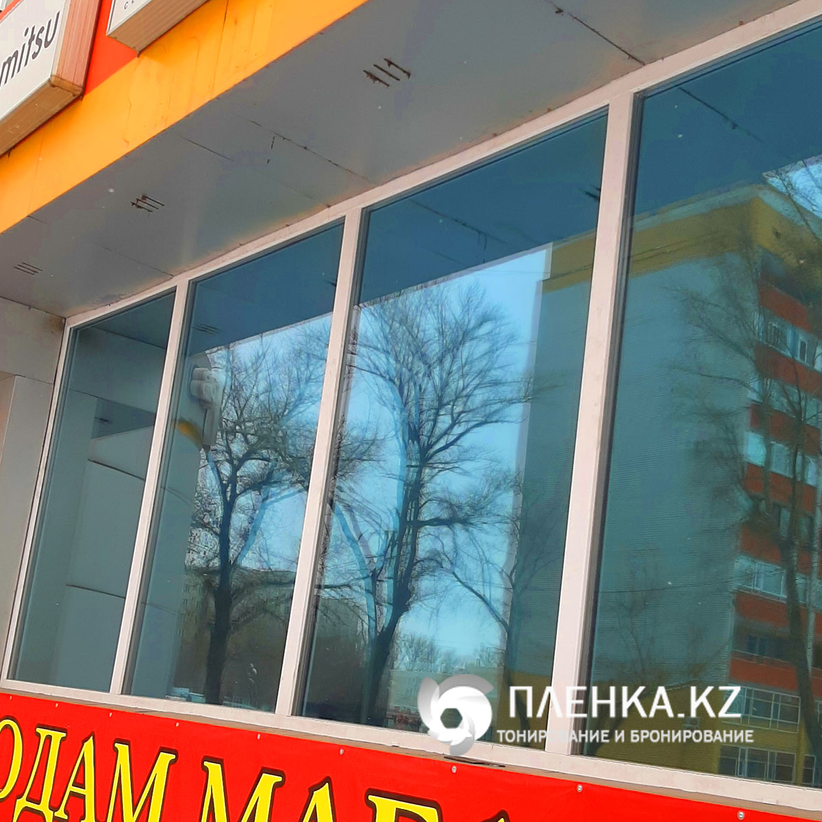 Тонирование окон магазина цветной зеркальной пленкой Silver Blue 15%.