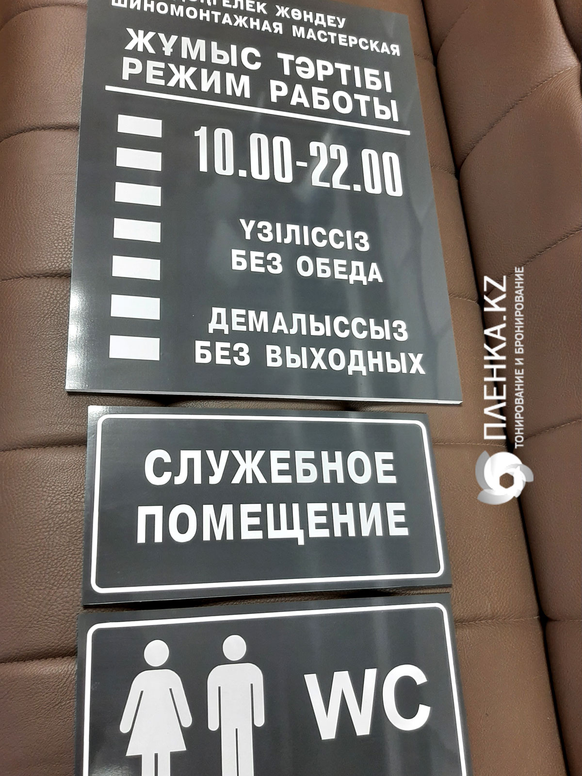 Занимаемся изготовление кабинетных табличек и вывесок на заказ в Павлодаре. Полный комплекс услуг: дизайн, изготовление, монтаж.