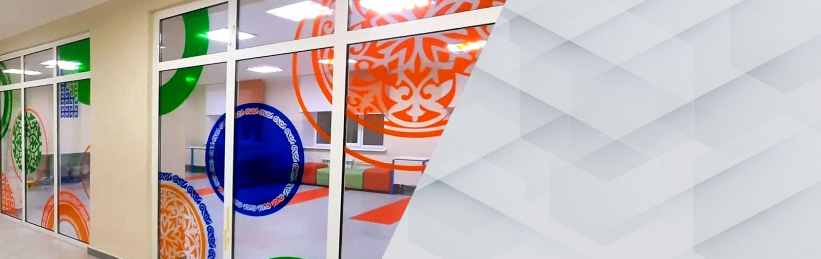 Декоративное оформление стекол и перегородок плоттерной резкой по индивидуальному дизайну.